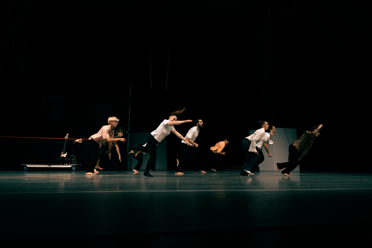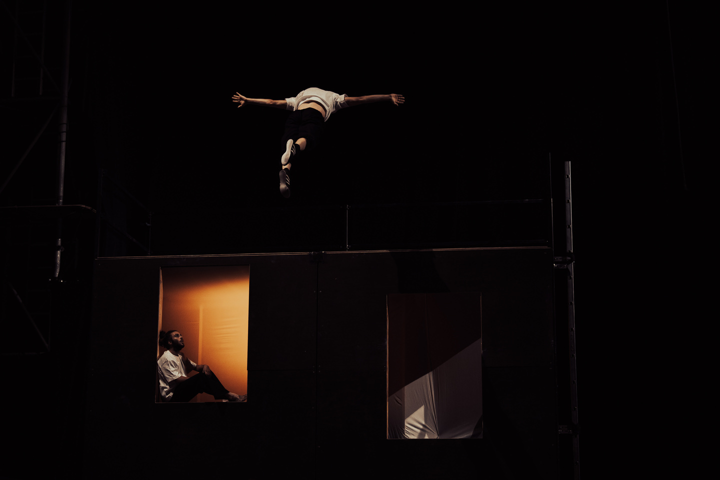 Entre cirque et théâtre, "Poursuites des autres rêves" explore ce qui nous pousse à avancer. Rêves, désirs, amours ou peurs : chacun poursuit quelque chose, ou est poursuivi par ce qu’il tente d’éviter.
