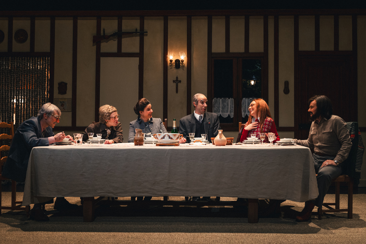 Le 31 décembre 1974, Valéry Giscard d’Estaing et son épouse Anne-Aymone sont invités par une famille d’agriculteurs normands, les Deschamps-Corrini, pour fêter le Nouvel An. Ce dîner, qui se prolonge symboliquement sur les sept années de son mandat, devient une métaphore des relations tendues et joyeuses entre le président et le peuple français, explorant des thèmes d’actualité comme le chômage et l’avortement, tout en alternant comédie et moments musicaux des années 70. Avec une mise en scène inventive, la pièce illustre de manière humoristique et poignante les enjeux sociopolitiques de cette époque.